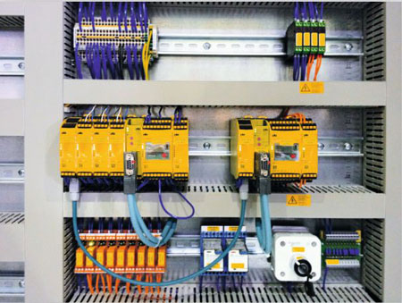 针对A公司,我们采用了PNOZ multi2可编程安全控制器,作为电控柜内的安全“大脑”,45mm的宽度大大节省了控制柜内的空间。通常一台包装机上会需要应用急停、安全门锁、甚至安全静止监控等多个安全功能,通过可编程的PNOZmulti2即可轻松解决问题,借助于图形化的软件工具PNOZmulti configurator,通过软件配置替代繁琐的硬件接线,既节省了设计人员的制图时间,也大大降低了硬件线缆的成本。更为重要的是,节省了调试时间。对于调试人员而言,直接进行快速的程序修改真是一件极具“幸福感”的事情。